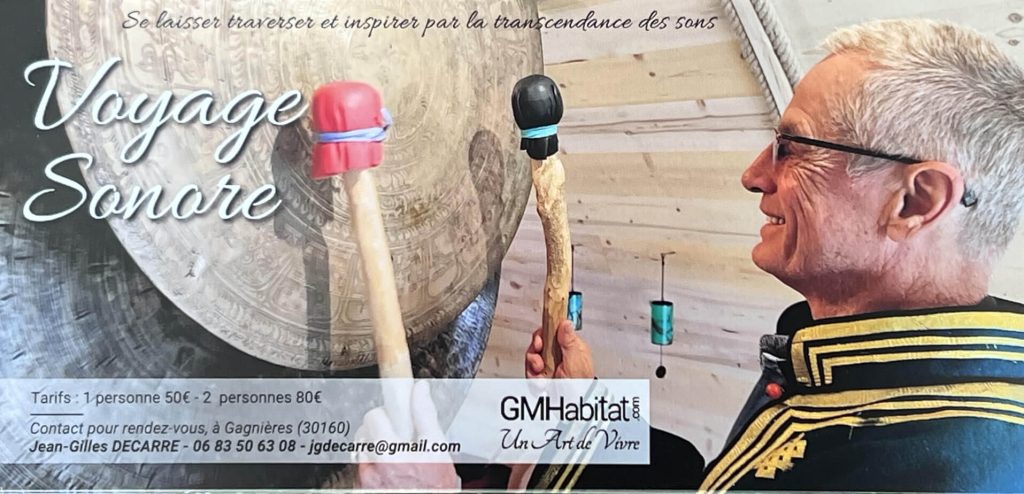 GMHABITAT – GÉOBIOLOGIE ANNECY Consultations Nos consultations à l’année – Rendez-vous téléphonique ou en direct aux Granges à GagnièresRenseignements et rendez-vous auprès de📪 184 les Granges, 30160 Gagnières 📞 Florence Crocherie +33 (0)6 70 72 54 73📧 fcrocherie@gmail.com 📞 Jean-Gilles Decarre +33 (0)6 83 50 63 08 (Etude de plan)📧 jgdecarre@gmail.com CONSULTATIONS « Enjeu de naissance » Trouver sa juste fonction, se sentir à sa place, Séance théorique, 1h30 : 130 € Séance pratique, 1h : 80 € En savoir plus CONSULTATIONS « Prénom » Quelles sont les énergies contenues dans les lettres du prénom ? A quelles situations de vie proposent-elles de faire face ? Séance individuelle, 1 heure : 80€ En savoir plus COACHING et Pratiques énergétiques Dissoudre une problématique de vie,Coaching, 1h : 80 €Trame (circulation de l’énergie dans le corps),1h : 70 € En savoir plus ETUDE DE PLAN Etude géobiologique du lieu privé et/ou professionnel.Vous pouvez simplement envoyer votre plan par mail ou courrier postal.Etude de plan : 70 € En savoir plus Quick view Add to compare Add to wishlist Voyage sonore Colisimo 50,00 € – 80,00 €Plage de prix : 50,00 € à 80,00 € 1 personne 50 € / 2 personnes 80 € GMHABITAT – GÉOBIOLOGIE ANNECY Consultations NOTRE ÉQUIPIER Contactez-nous